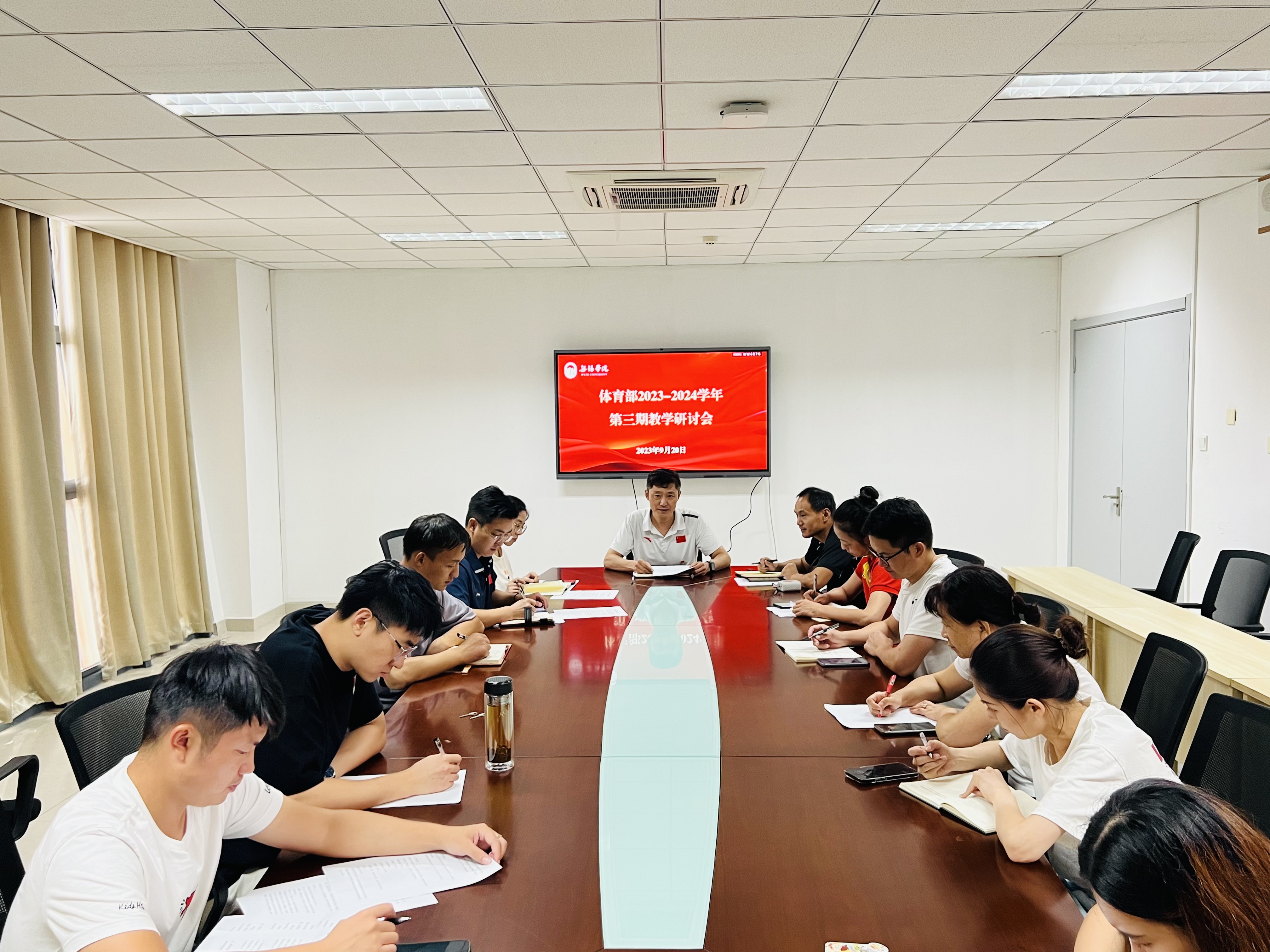为进一步提升体育部教师教学技能和学科素养,9月20日下午,体育部于会议室204召开2023-2024学年第三期教学研讨会。体育部副主任宋巨华主持会议,全体教职工参加会议。