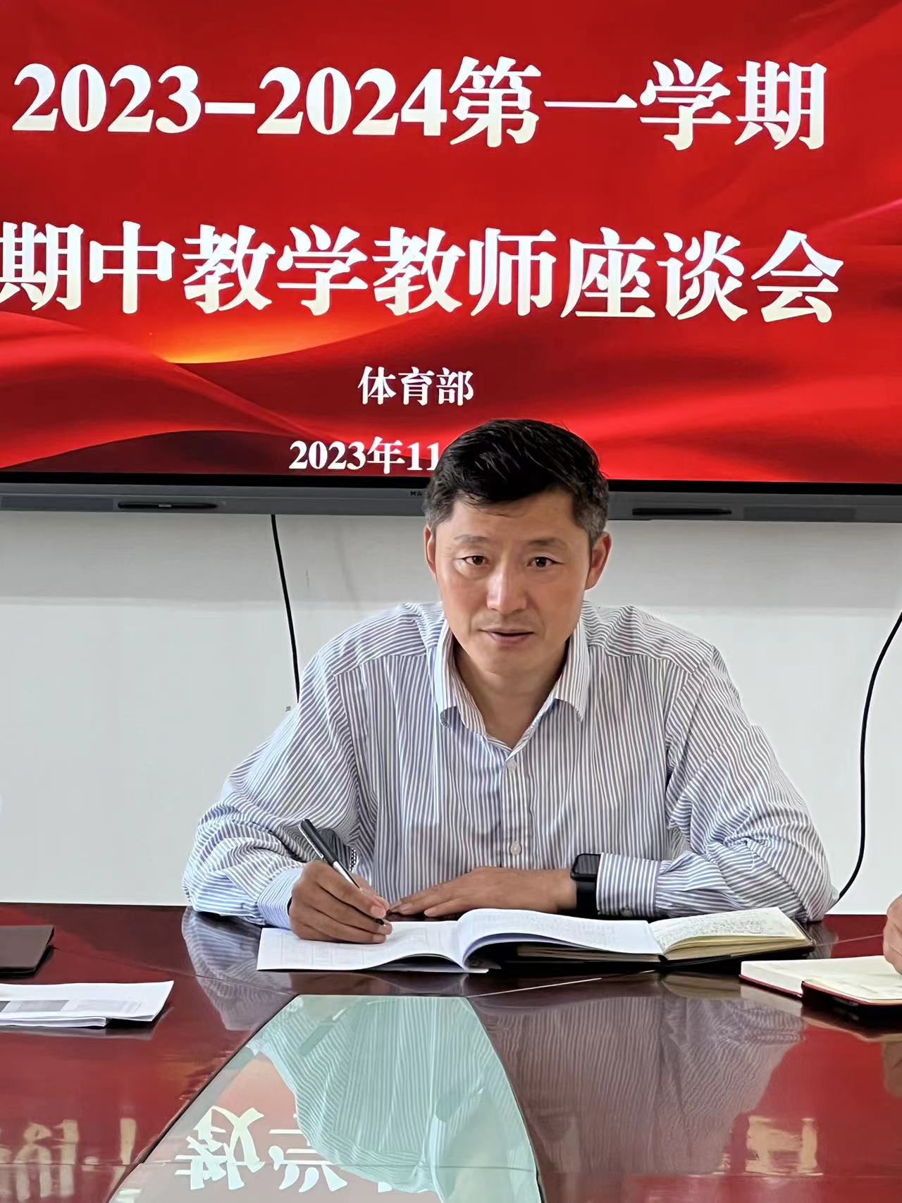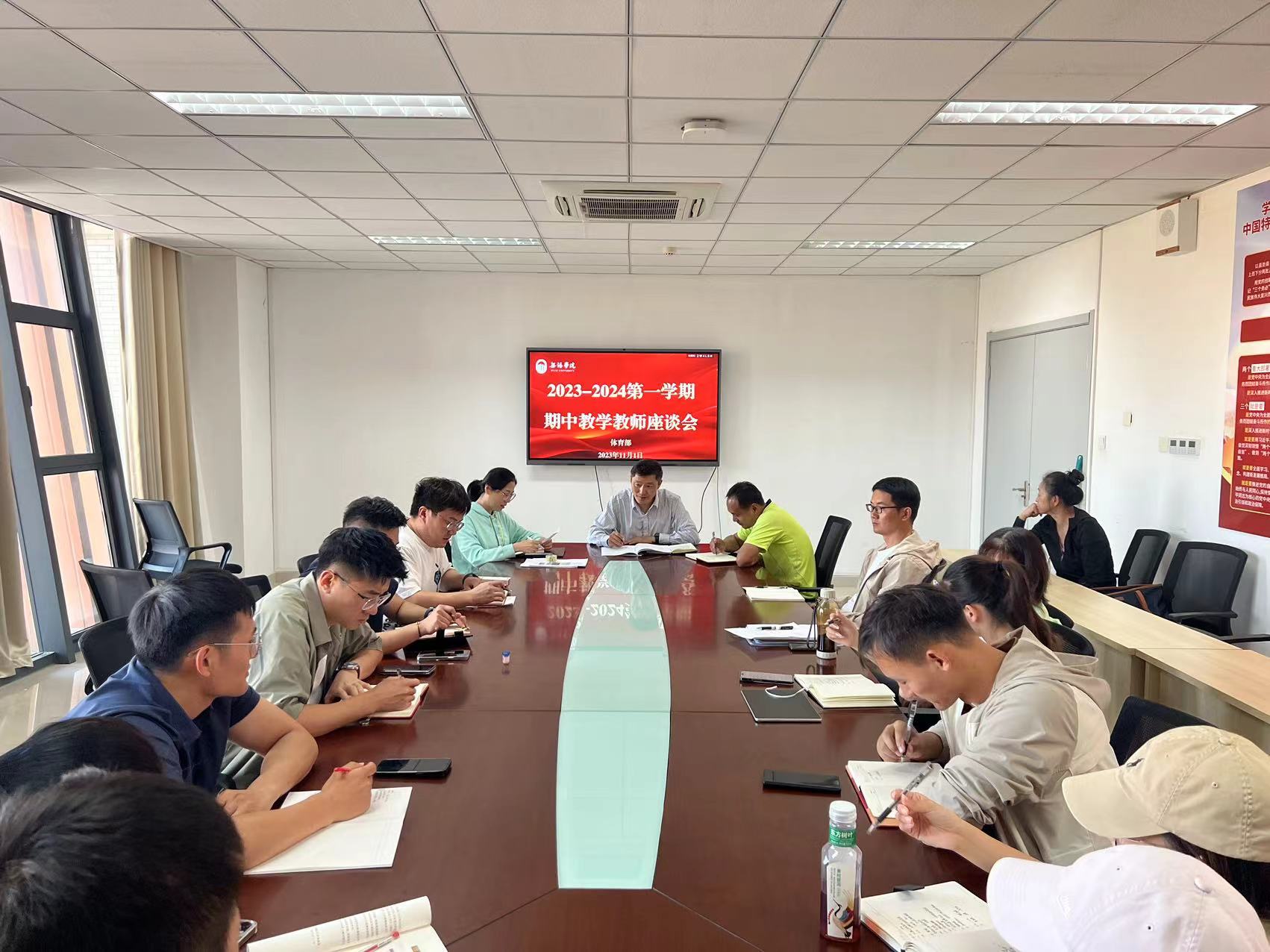 为充分了解教师教学、学生学习现状,更好地推进体育部整体教育教学水平,凝心聚力营造良好教风、学风,切实提升人才培养质量,按照教务处发布的《关于开展2023-2024学年第一学期期中教学检查工作的通知》要求,体育部于2023年11月1日下午在204会议室召开教师座谈会。全体教职工参加,会议由体育部副主任宋巨华主持。