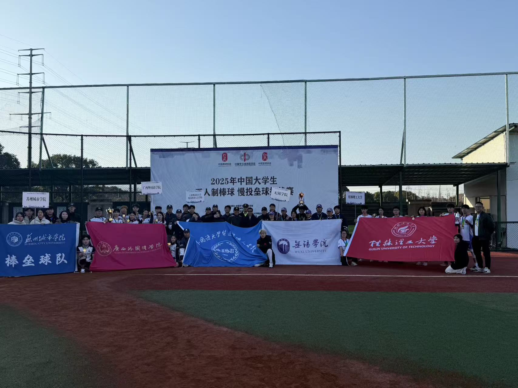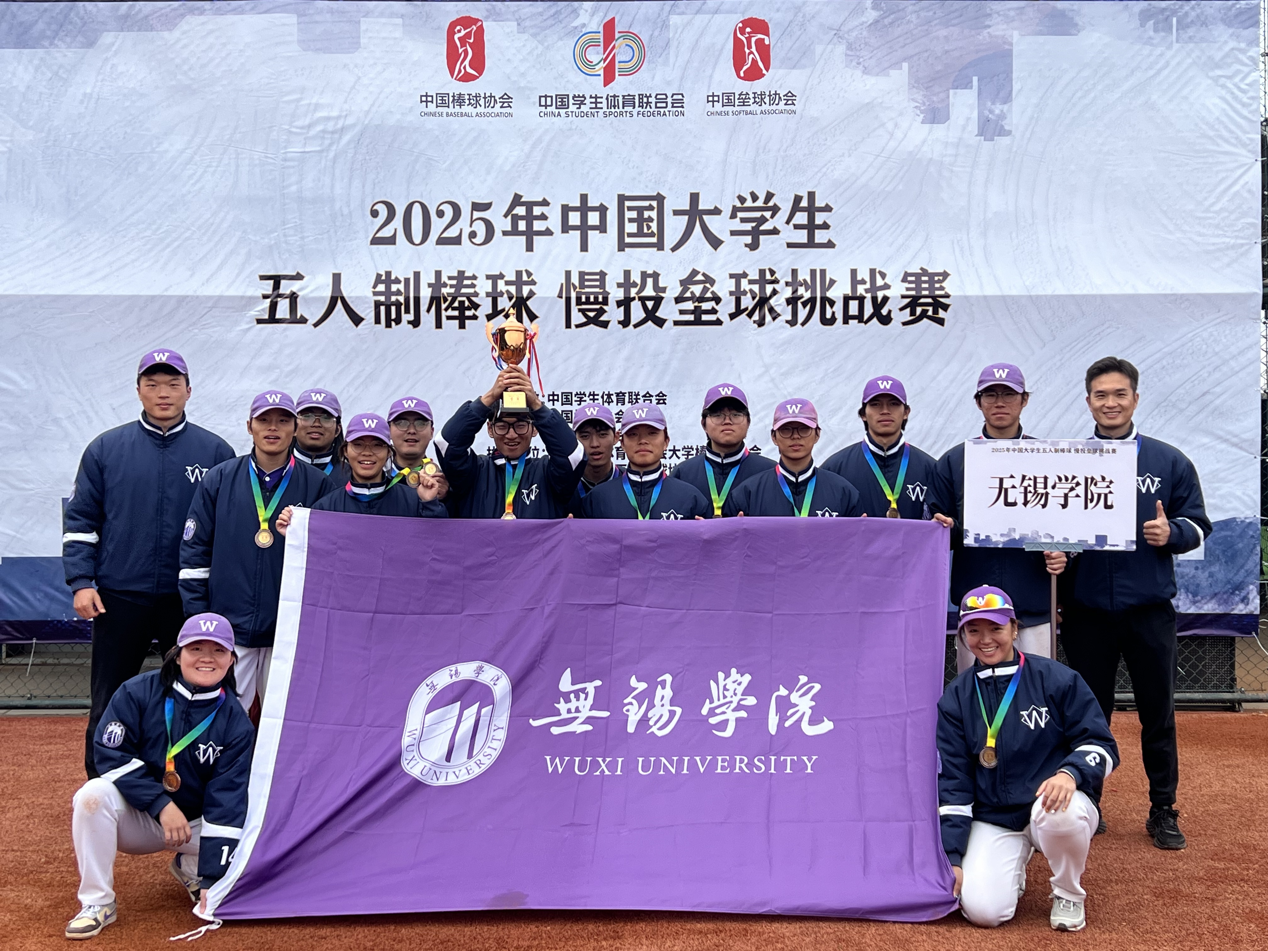 12月26日,2025年中国大学生五人制棒球、慢投垒球挑战赛在苏州U18国家女子垒球吴中集训基地圆满落幕。首次组队参加全国性赛事的无锡学院棒垒球队,在五人制棒球和慢投垒球两个甲组项目中发挥出色,双双夺得季军,捧回两座沉甸甸的全国赛奖杯。