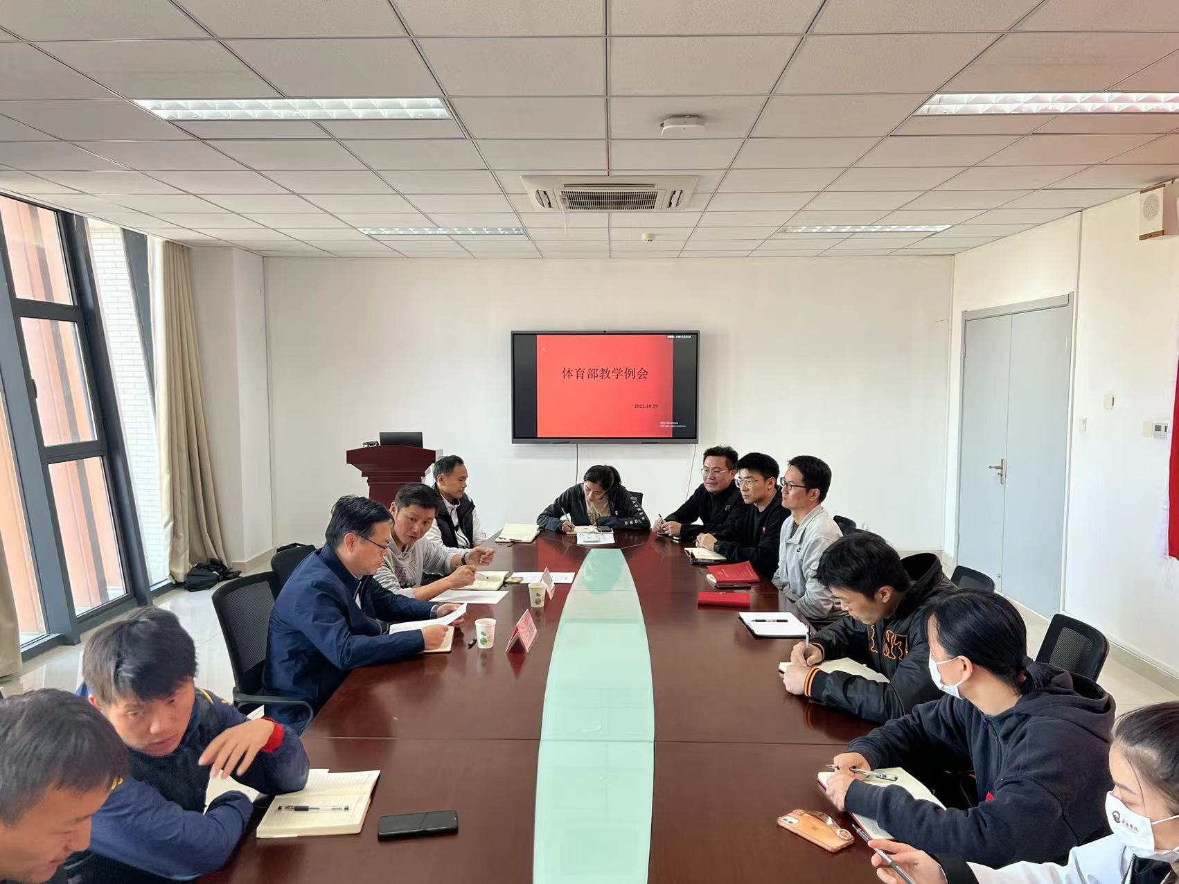10月19日下午,体育部教工大会在体育部会议室204召开。校党委常委、纪委书记王友明出席并讲话,体育部负责人宋巨华主持会议,全体教职工参加会议。