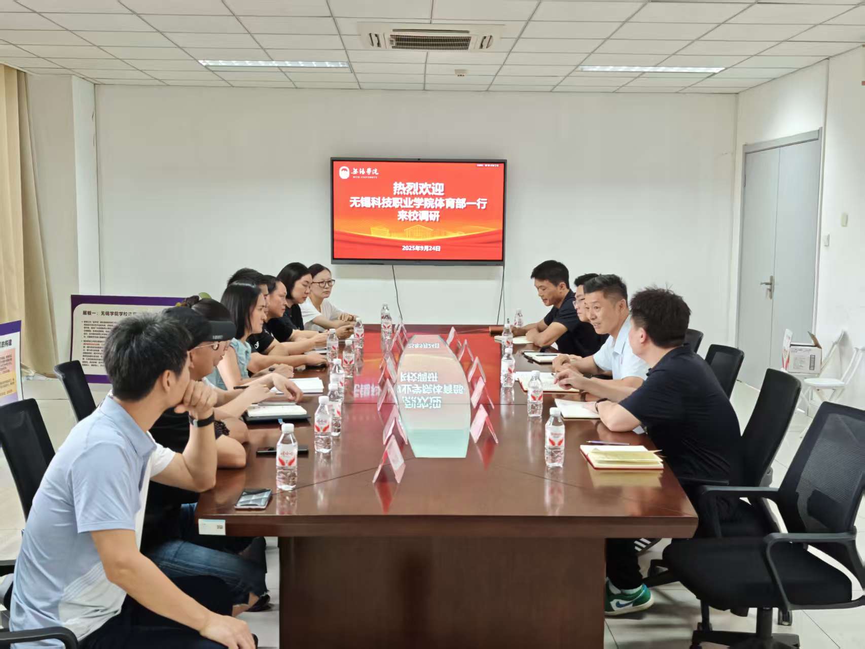 为进一步深化校际交流与合作,促进互学互鉴、协同发展,9月24日,无锡科技职业学院体育部主任何丽花率队莅临我校体育部开展专题调研交流。我校体育部副主任宋巨华、体测中心主任李华飞等相关负责人出席座谈。座谈会由宋巨华主持。